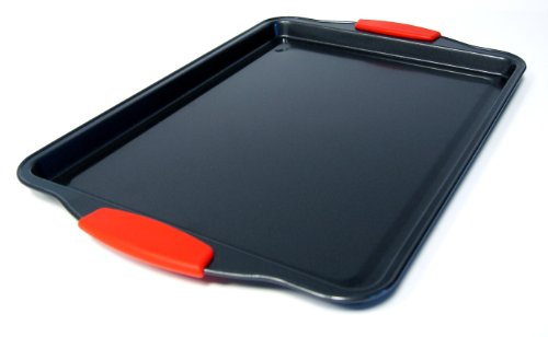 2247 Features: -Baking / cookie sheet. -Ready Steady Cook range. -Constructed of carbon steel. -Heavy weight, heat distribution. -Silicone enhanced handles for a non-slip grip. -Dual layer non-stick coating inside and outside for ease of cleaning. -Oven safe up to 240C/475F/Gas Mark 9. -Overall dimensions: 4 cm H x 30 cm W x 33 cm D.